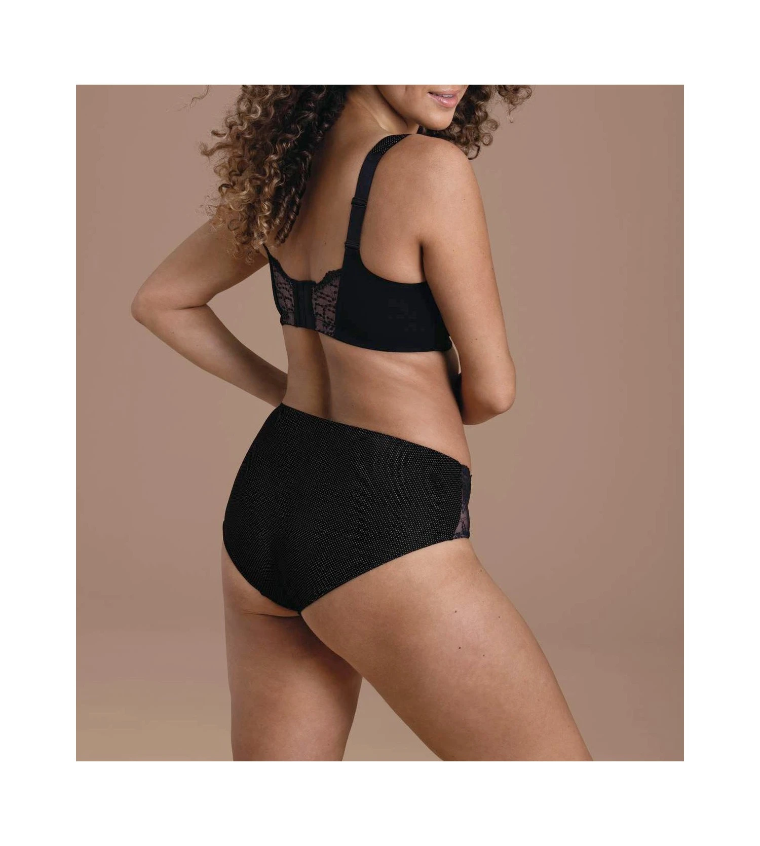 - Culotte taille haute en microfibre et tulle brodé à pois.