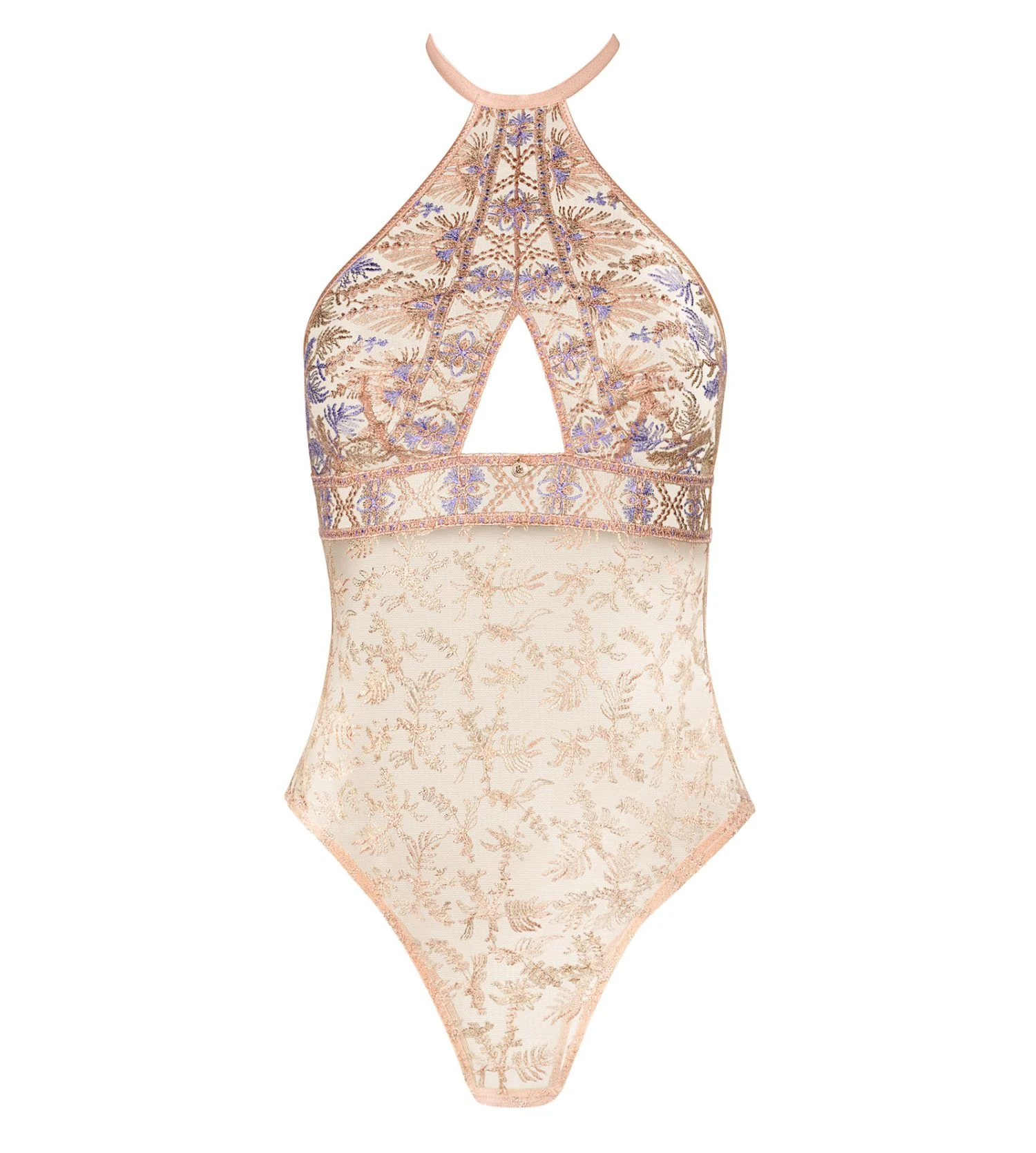 Plongez dans l’univers sensuel et envoûtant de la collection Sound of Heart avec ce body string sans armatures signé AUBADE. Confectionné en tulle brodé sublimé par des fils lurex scintillants, il épouse la silhouette avec élégance et audace. Son dos nu plongeant, sa coupe ultra-échancrée et ses finitions sans couture lui confèrent un design irrésistiblement moderne et glamour.