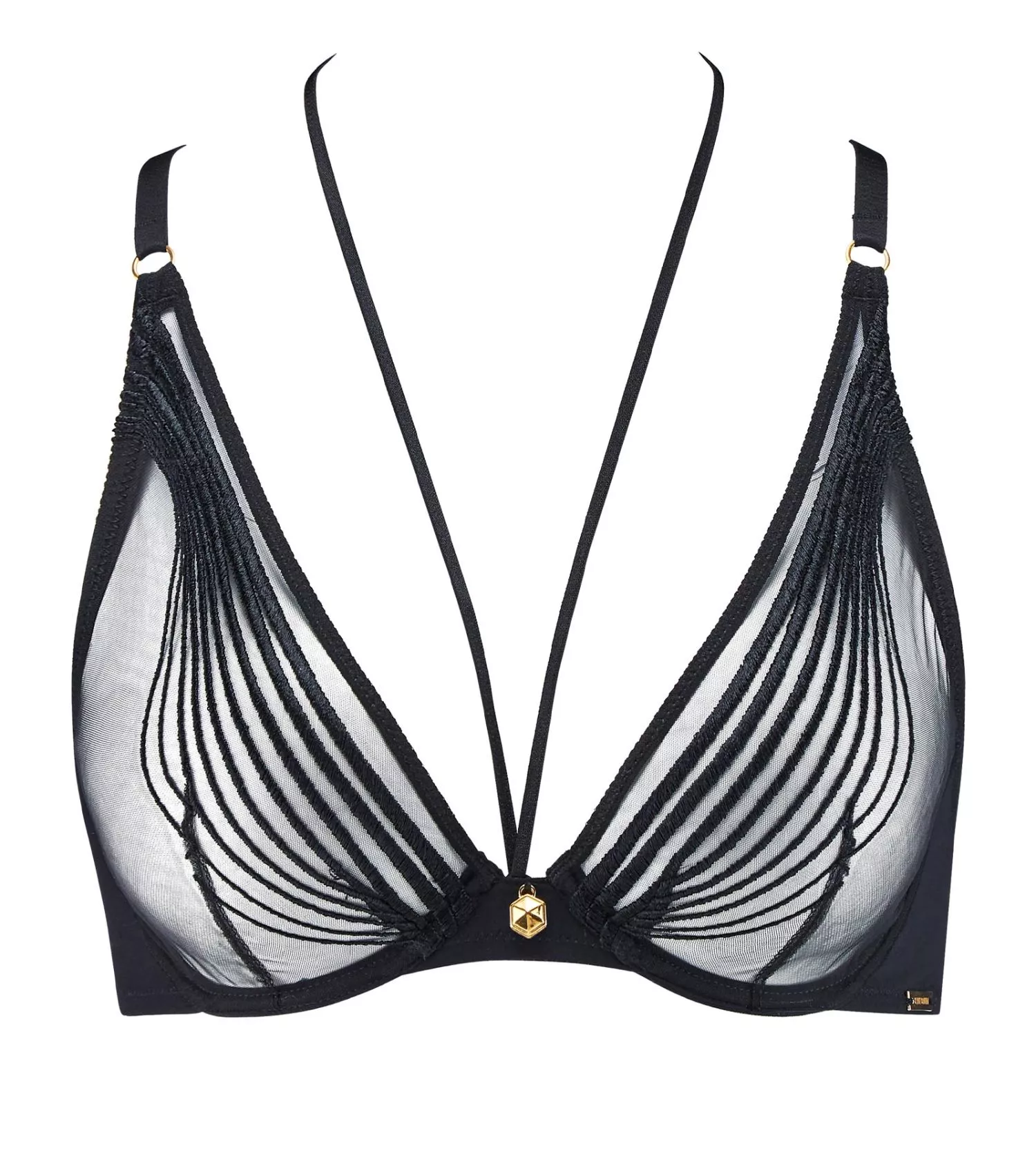 - Broderie Graphique : Broderie française épurée sur tulle transparent, révélant la peau avec élégance.