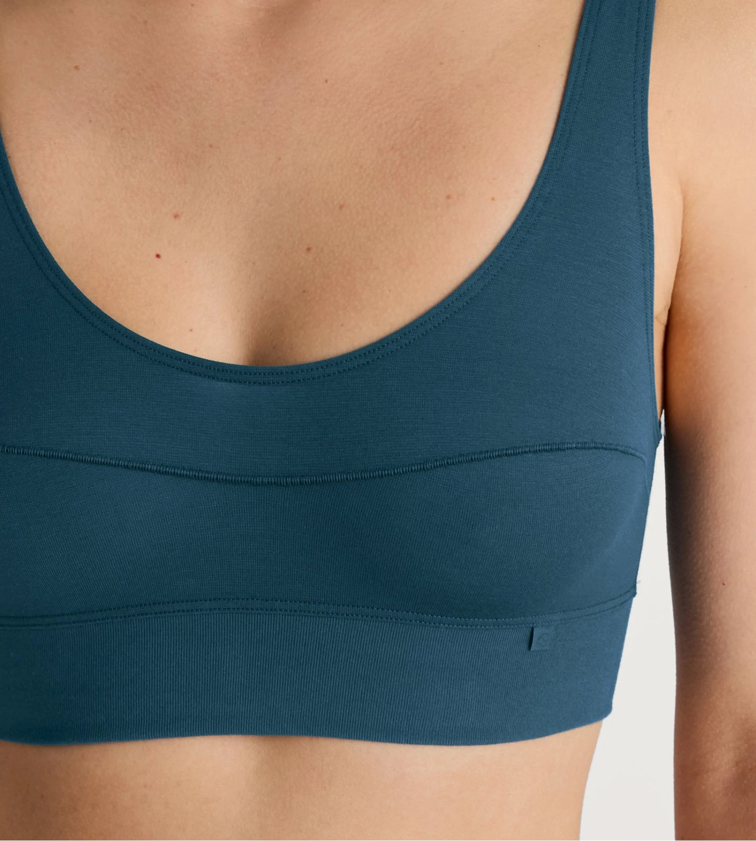 Brassière Calida extensible en coton destinée à toutes les femmes qui apprécient les sous-vêtements confortables, en particulier pour l’activité physique. Avec sa coupe sculptante, cette brassière maintient parfaitement la poitrine sans la compresser.