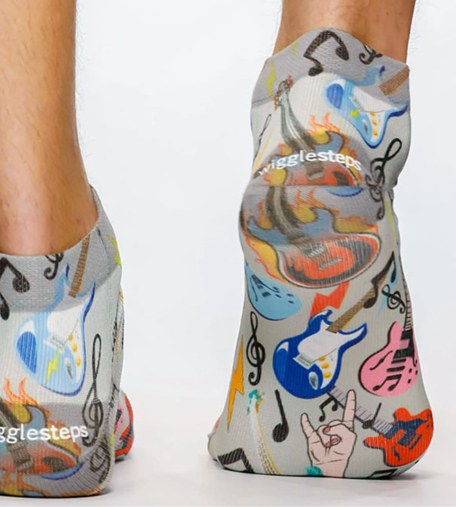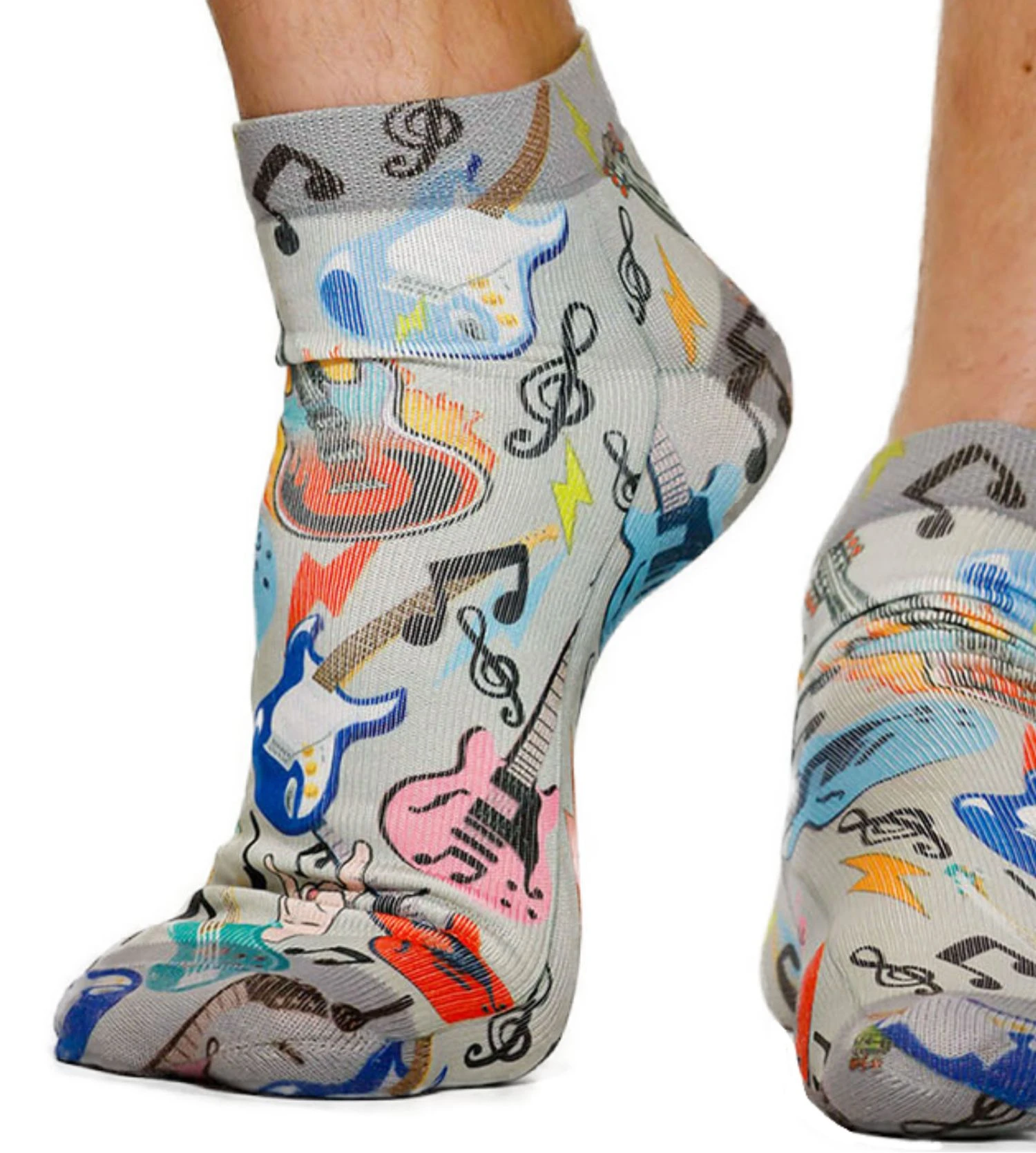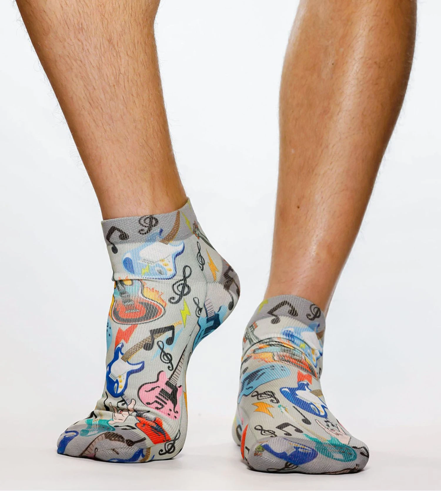 Chaussettes Men Sneacker imprimé Let’s Rock de la marque de chaussettes fantaisie Wigglesteps.