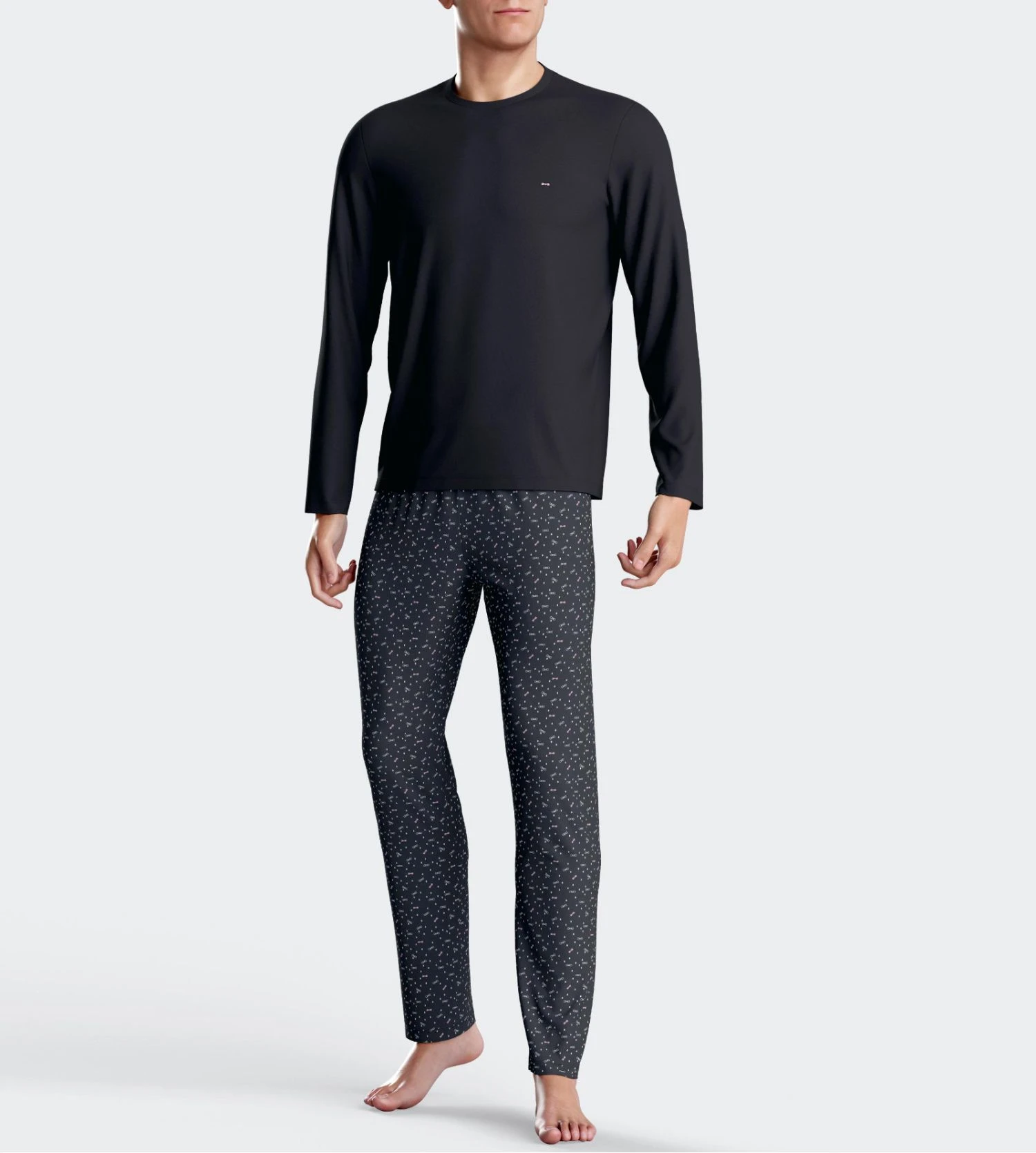 - Composé d’un haut à manches longues + un pantalon droit imprimé.