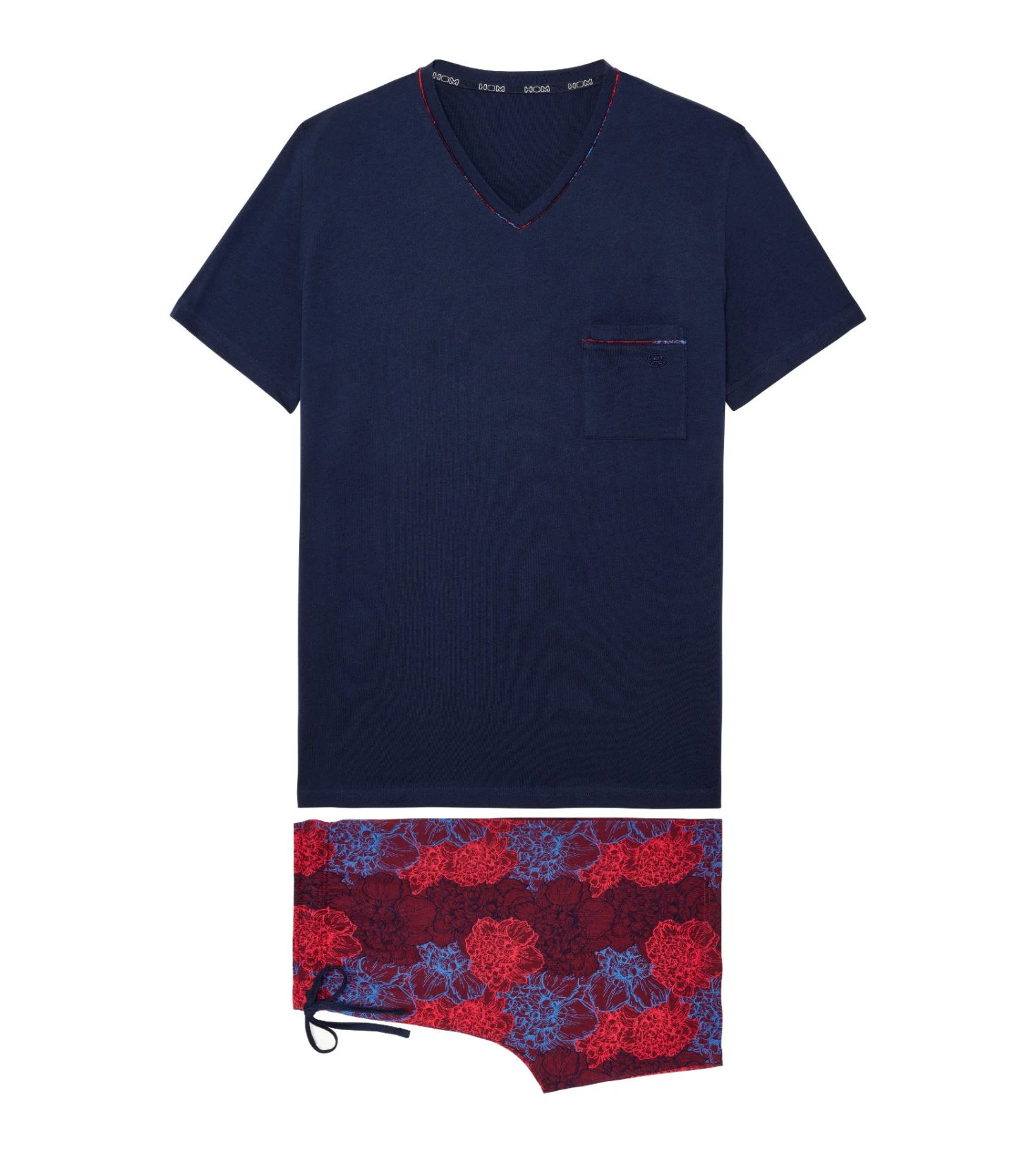 Pyjama court en coton – Modèle Bouquet de la marque HOM.