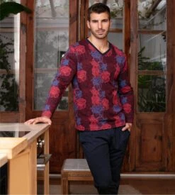 Pyjama long pour homme en coton – Modèle Bouquet de la marque HOM.