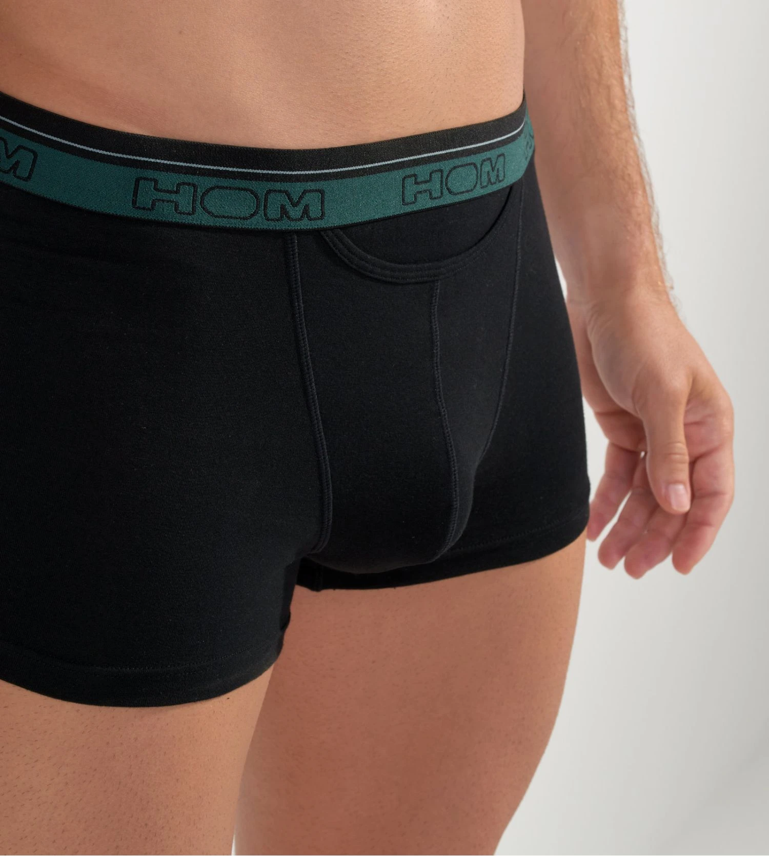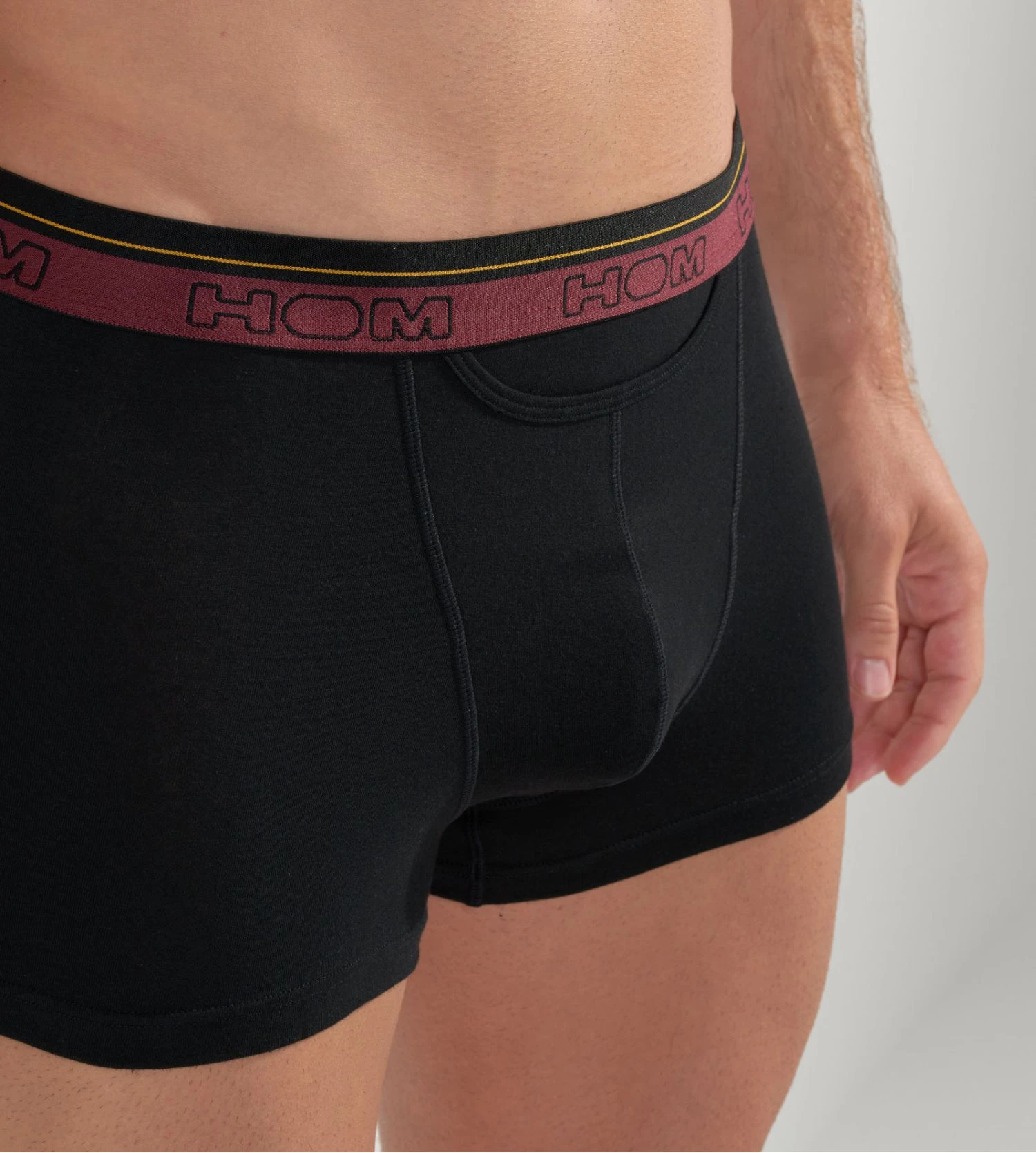 - Logo HOM ton sur ton autour de la ceinture.