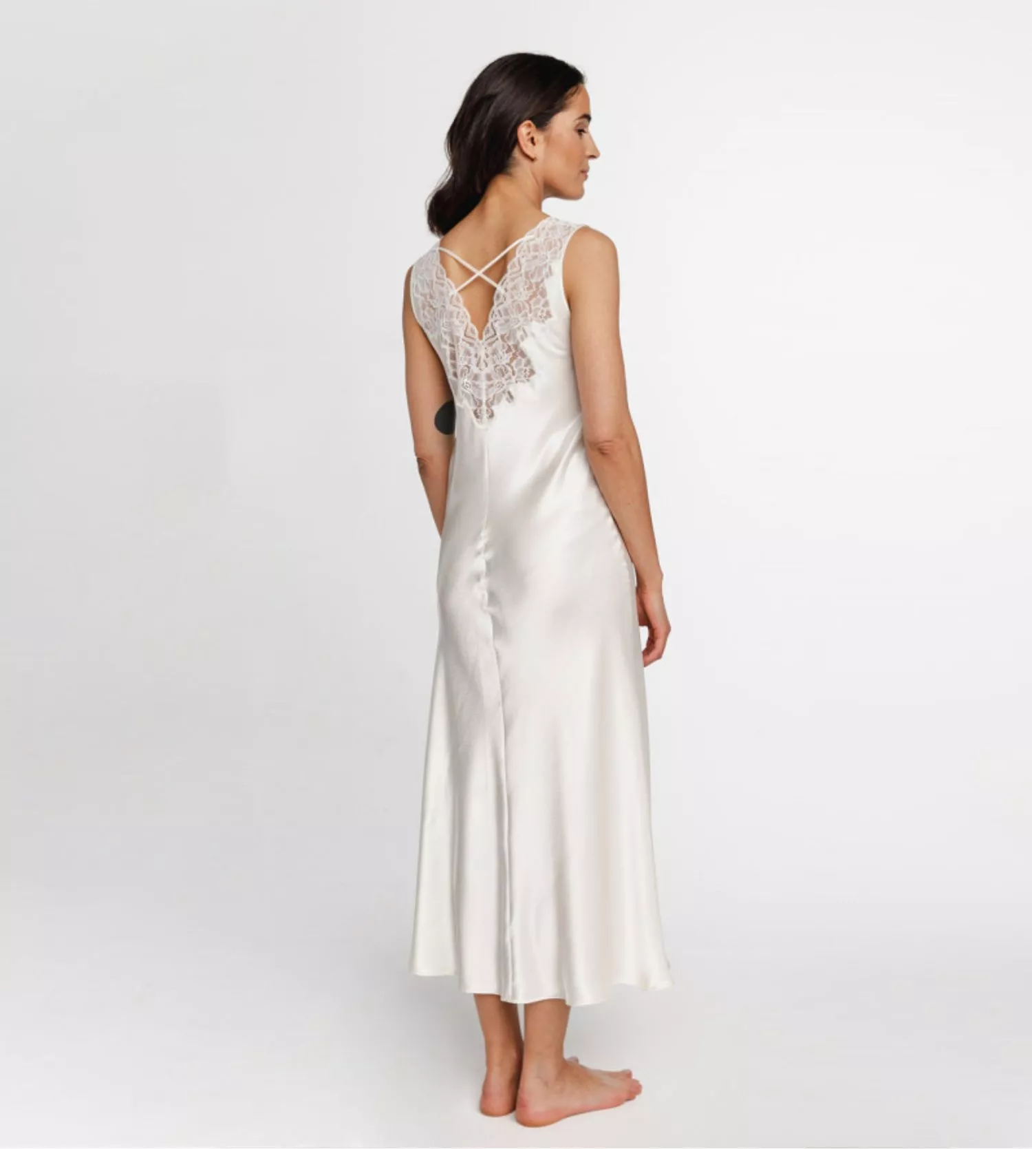 Longue nuisette en satin et dentelle de la marque COEMI.