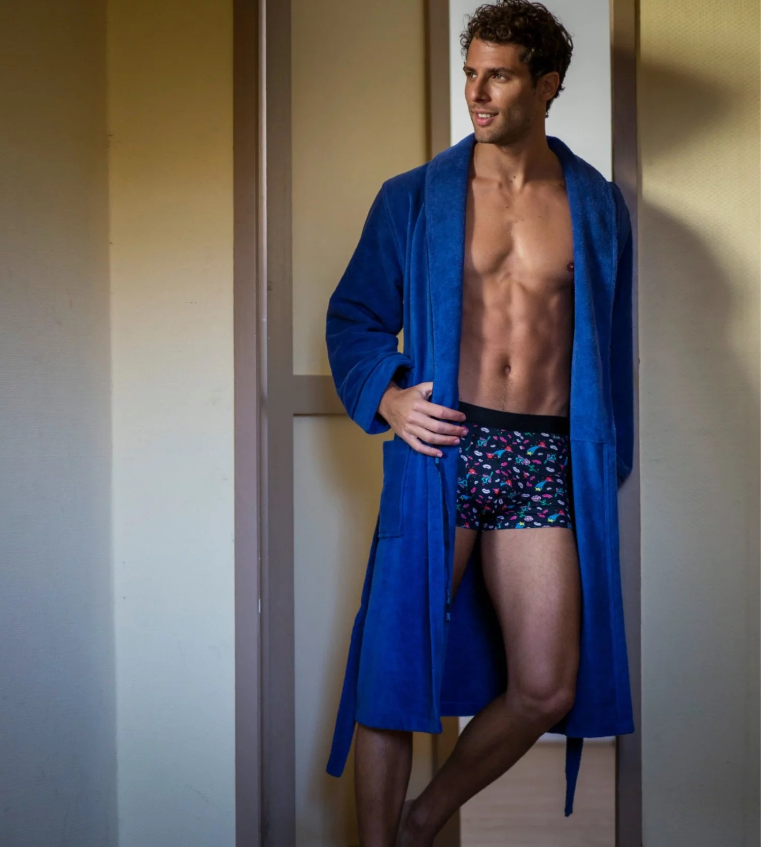 - Peignoir homme en coton absorbant.