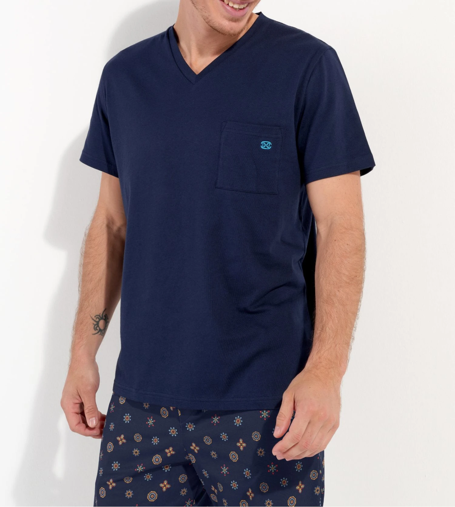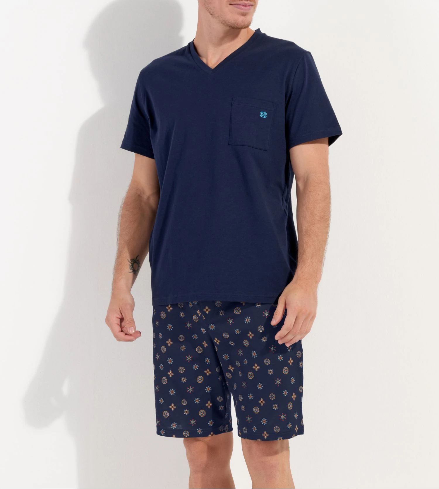 Pyjama court en coton et modal Mandala de la marque HOM.