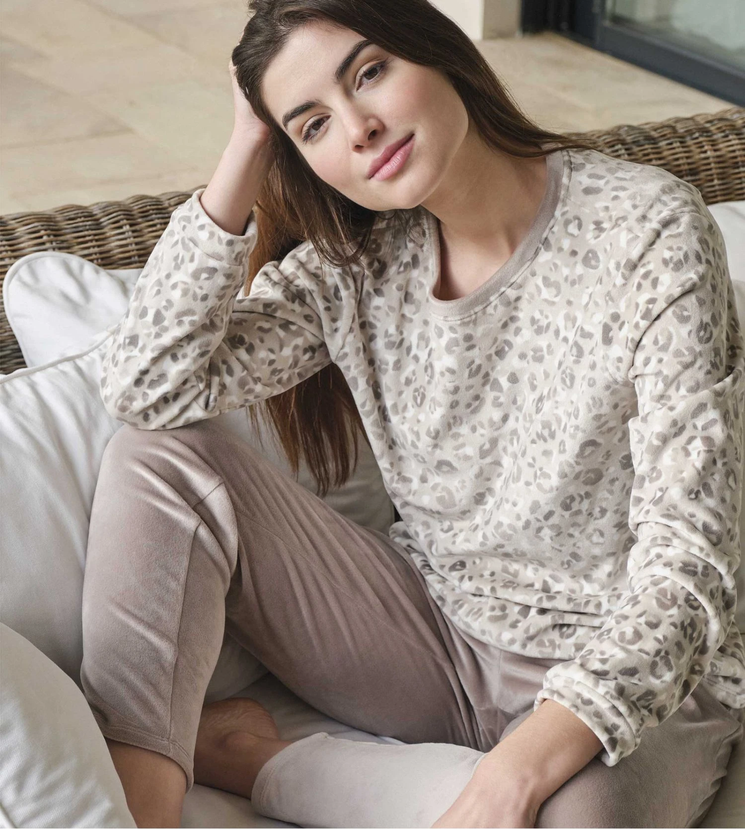Pyjama polaire chaud imprimé léopard pour femme de la marque Massana.