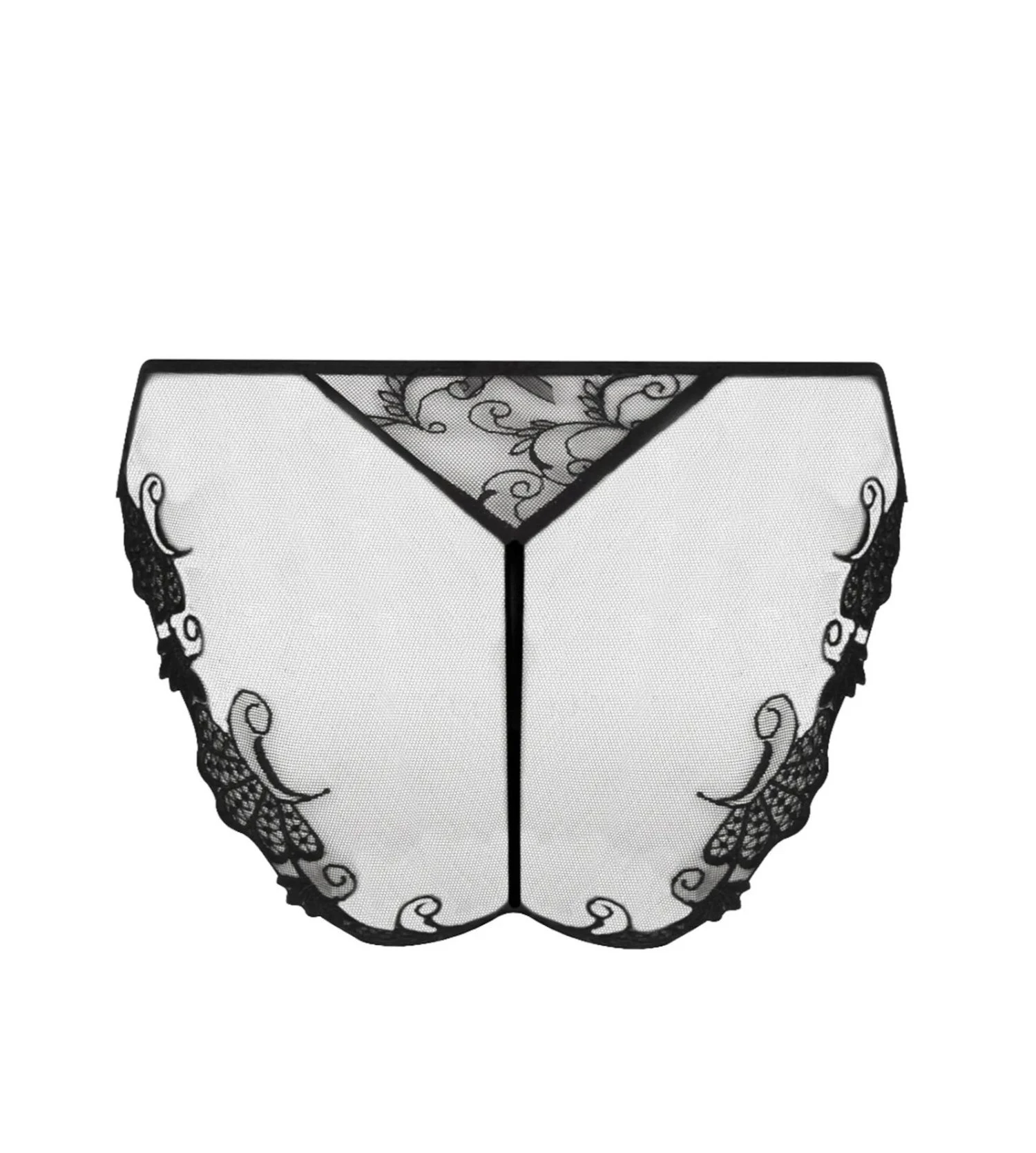 Culotte Dressing Floral haute couture au style chic inspiré de l’Art Déco. Conception en tulle effet tatoo égayée d’un dessin spectaculaire en point guipure. Un slip séduisant, moderne et élégant !