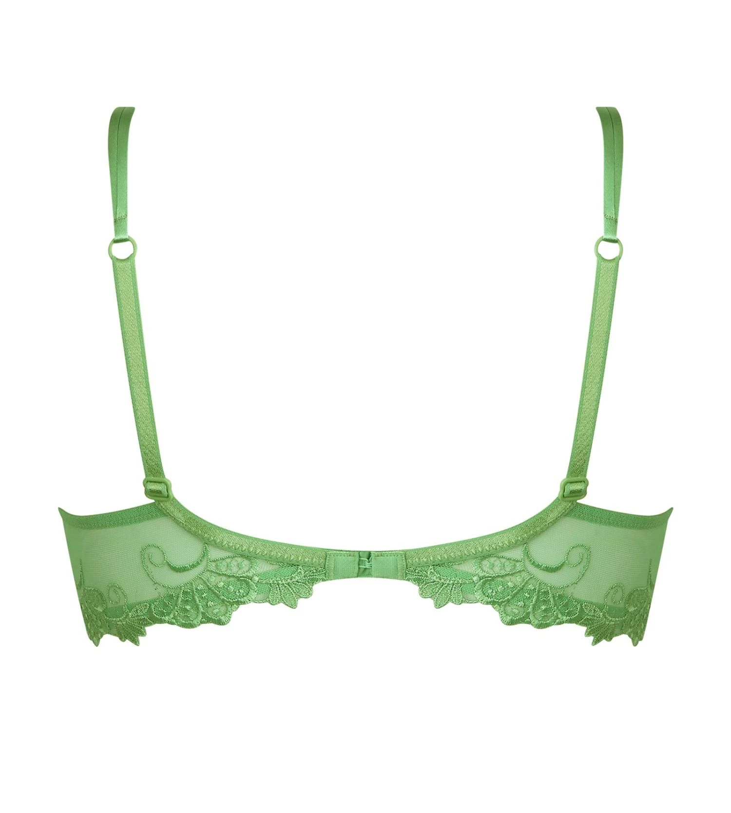 - Broderie guipure sur bonnets et bretelles.