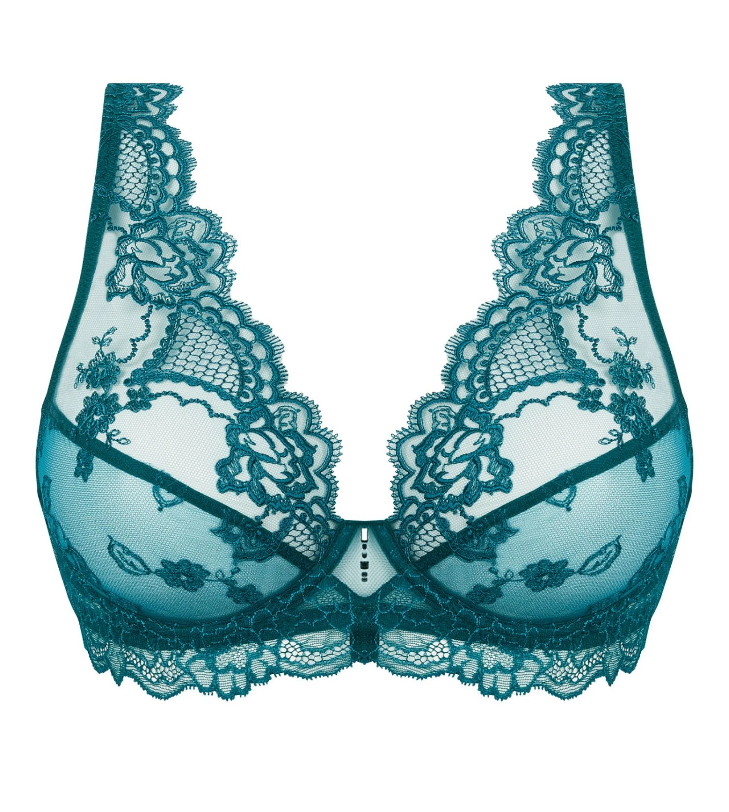 - Soutien-gorge triangle armatures en tulle brodé et dentelle de Calais.