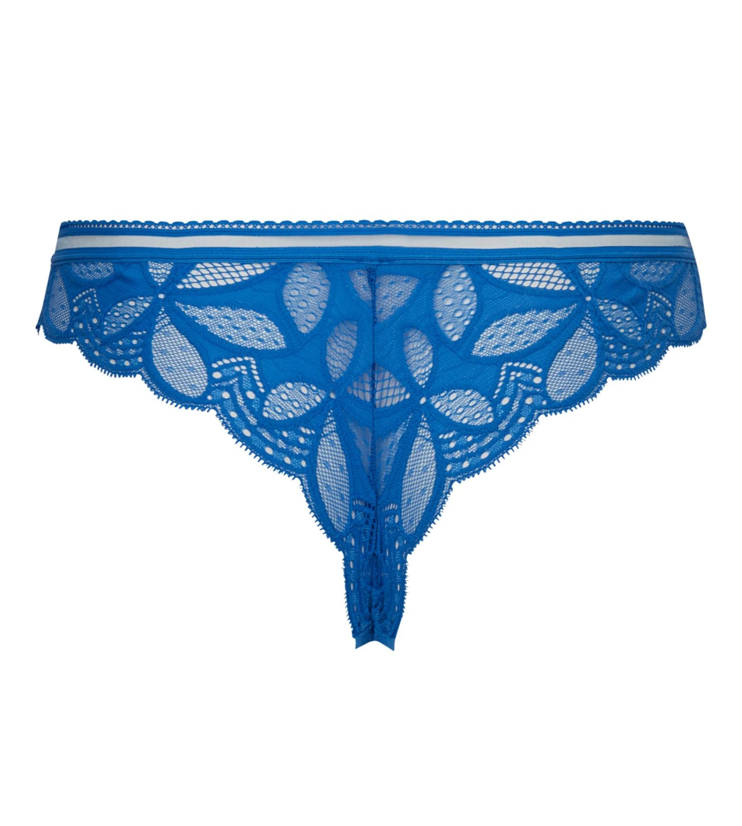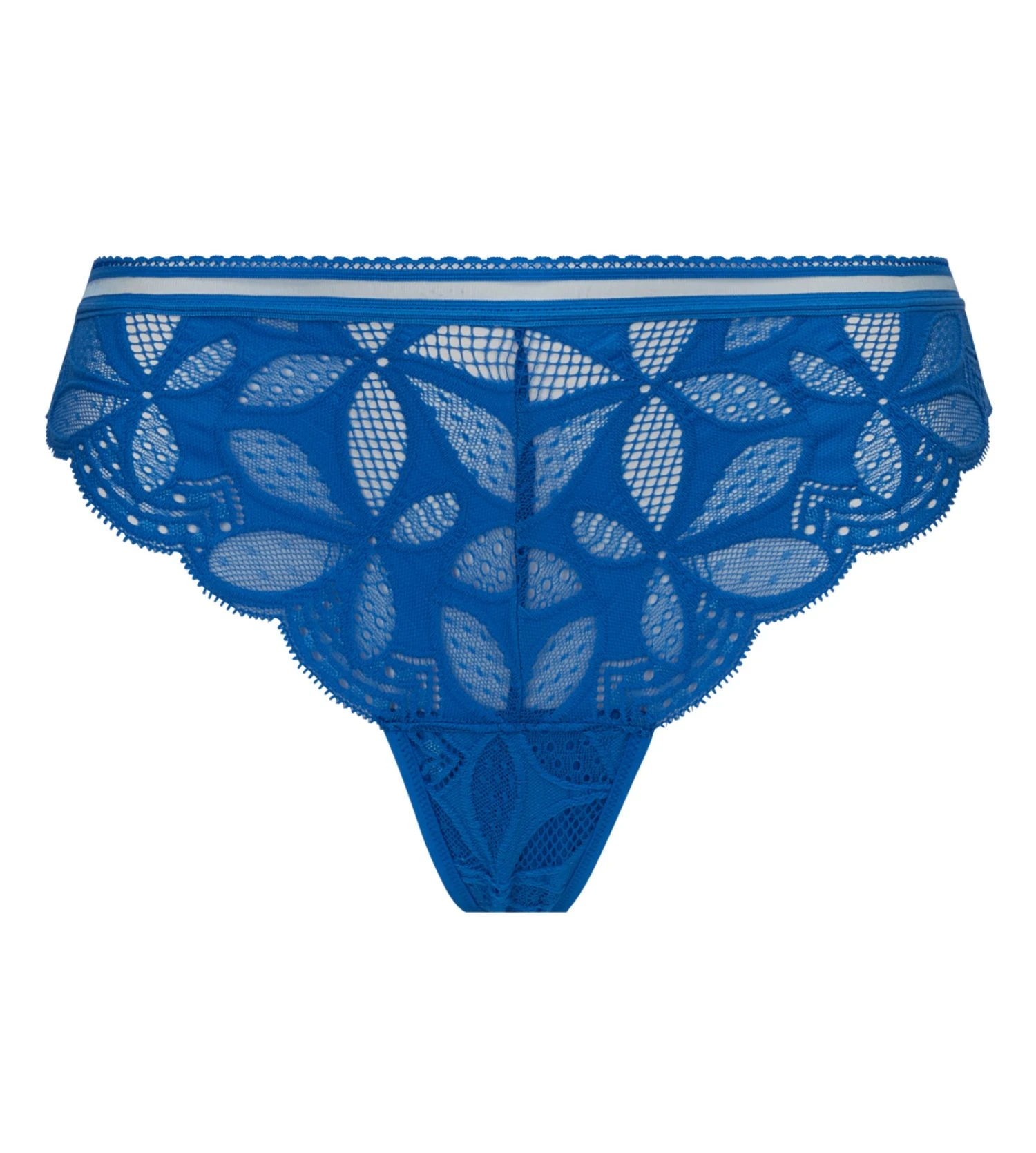 - Tanga en microfibre douce, résille et dentelle florale plumetis.